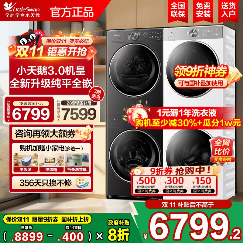 [纯平全嵌]小天鹅小乌梅3.0轻享版 10KG洗烘套装热泵烘干组