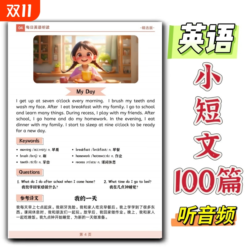 小学每日英语晨读100篇每日英语听读100篇每日英语阅读100篇