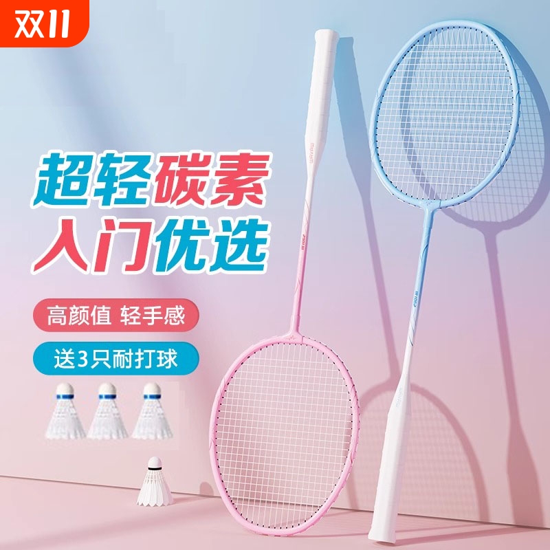 羽毛球拍成人碳素纤维男女专业正品旗舰店儿童耐打超轻单双拍套装