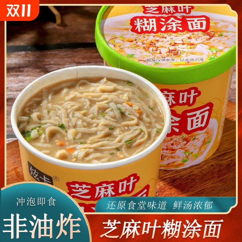 芝麻叶糊涂面河南美食杂粮非油炸面饼冲泡速食泡面条整箱桶装拌面