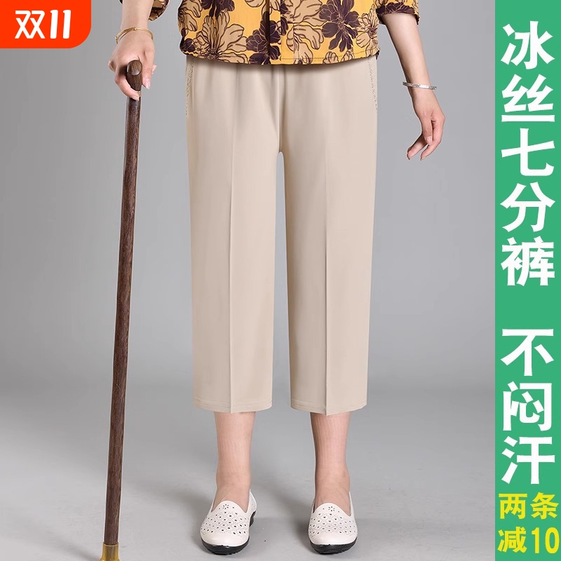 妈妈裤子夏季薄冰丝九分裤休闲裤