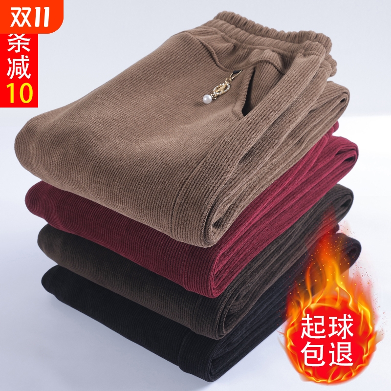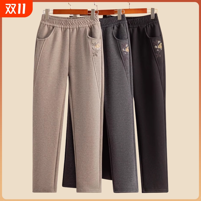 中老年人女裤春季花裤子奶奶春秋加肥大码长裤妈妈加绒加厚直筒裤