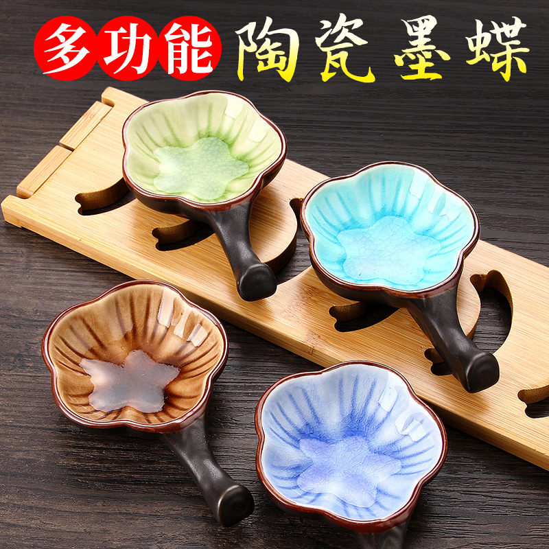 梅花墨碟砚台多功能陶瓷笔搁笔舔