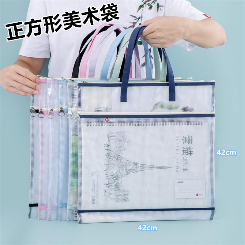 正方形双层手提文件袋素描本收纳