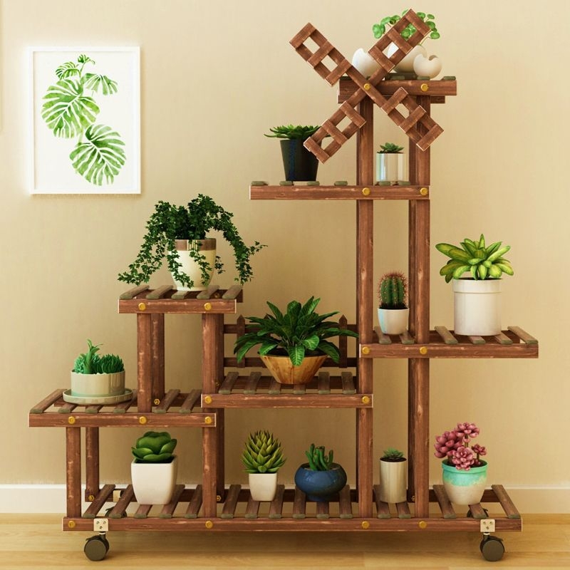花架置物架阳台新款多肉花盆植物摆放架木制新款花架子客厅落地式