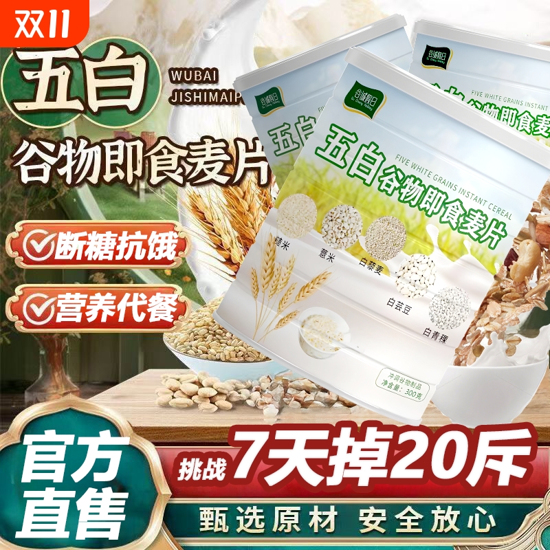 五白谷物即食麦片官方旗舰店正品专冲泡燕麦片无糖低早餐用脂肥减