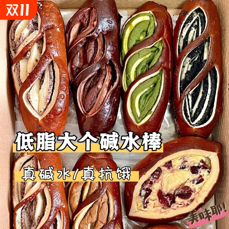 碱水面包无糖精减低脂肥全麦碱水棒代餐手作早餐手工结官方旗舰店