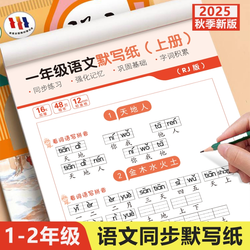 一年级语文默写纸二年级三年级上册下册同步练字帖看拼音写词语天天练