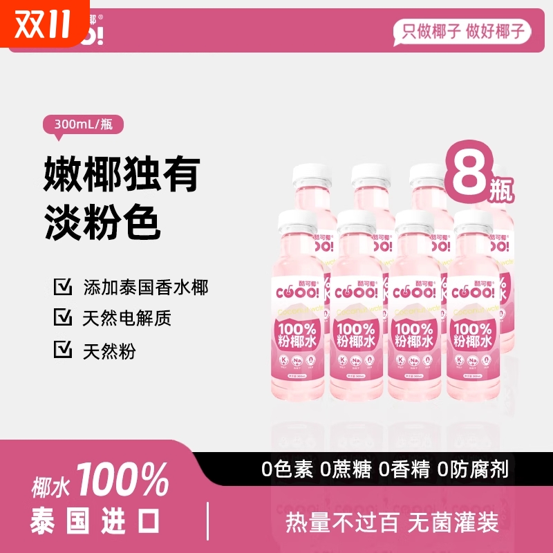 酷可椰粉红椰子水整箱0脂肪泰国进口百分百纯椰青水官方店
