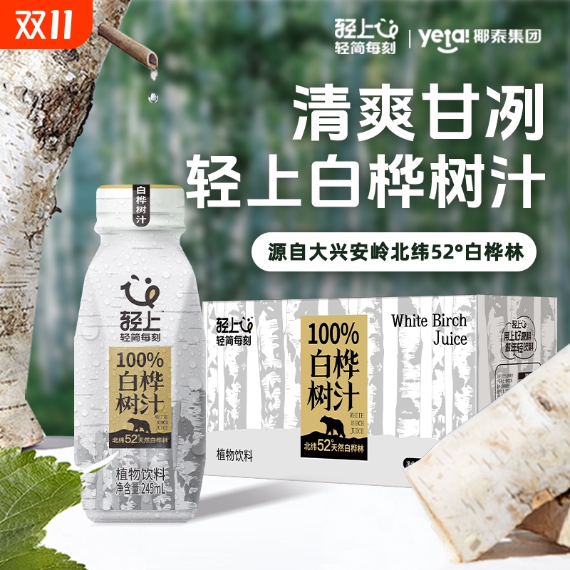 轻上NFC100%白桦树汁饮料0卡0脂肪天然原液瓶装