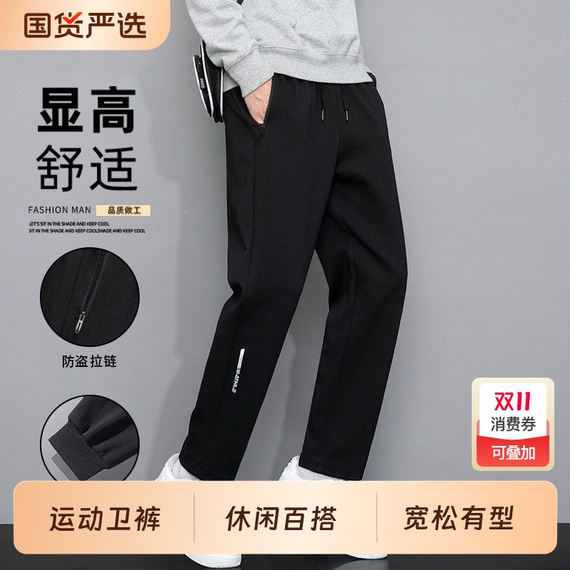 裤子男士2025新款春秋季运动卫裤加肥加大码秋冬直筒加绒束脚长裤