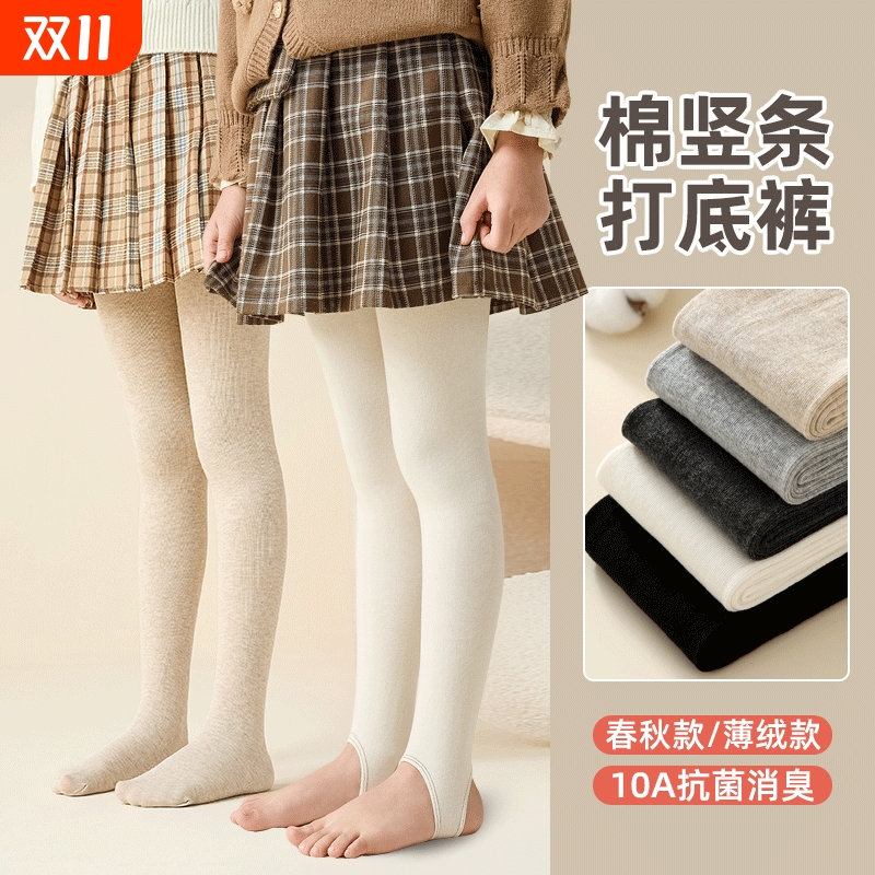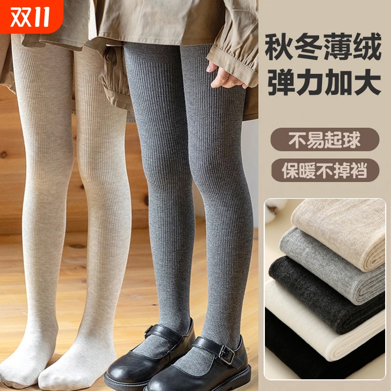 儿童打底裤外穿春秋款女童秋冬加绒打底袜大童灰色踩脚宝宝连裤袜