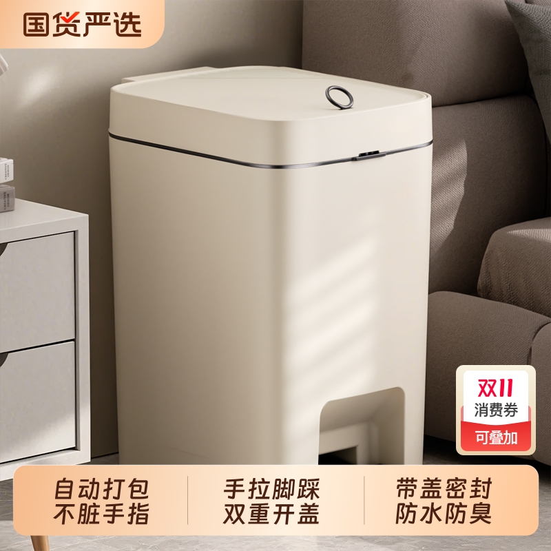 汉世刘家免弯腰脚踩带盖垃圾桶防臭防水卫生间厨房客厅双桶大容量