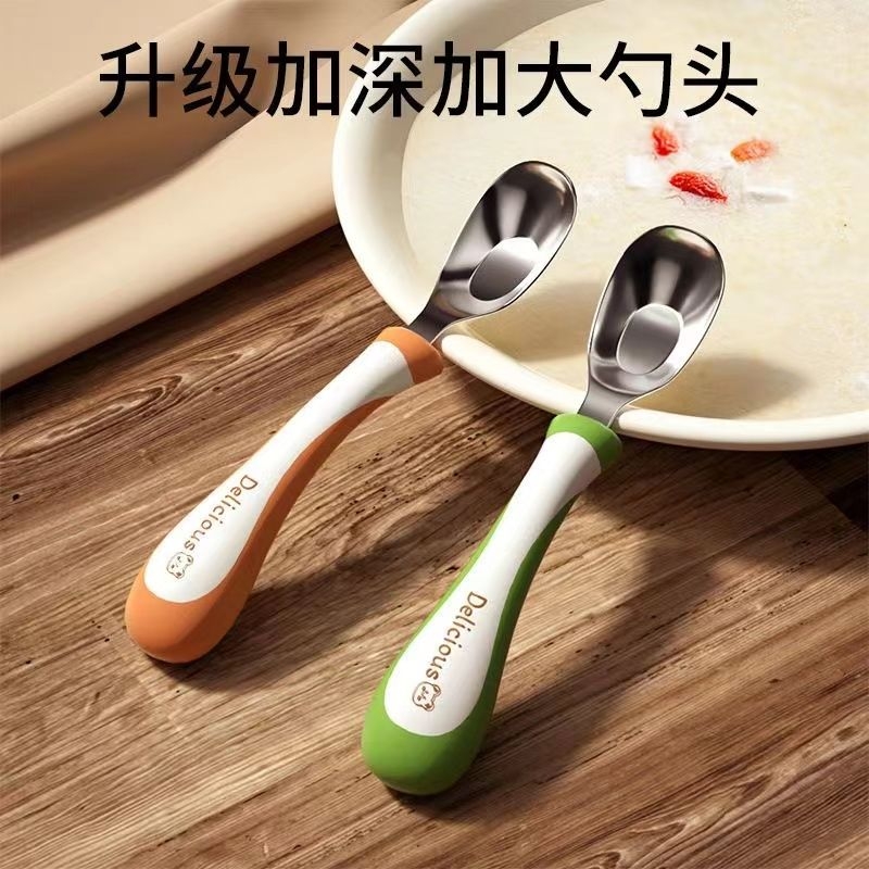 宝宝自主进食辅食勺子316L不锈钢婴儿元宝叉学吃饭训练儿童专用