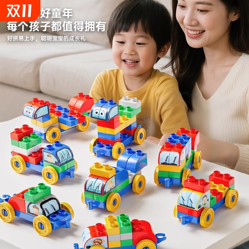 儿童大颗粒积木玩具车宝宝早教益智拼插百变小汽车男女孩生日礼物
