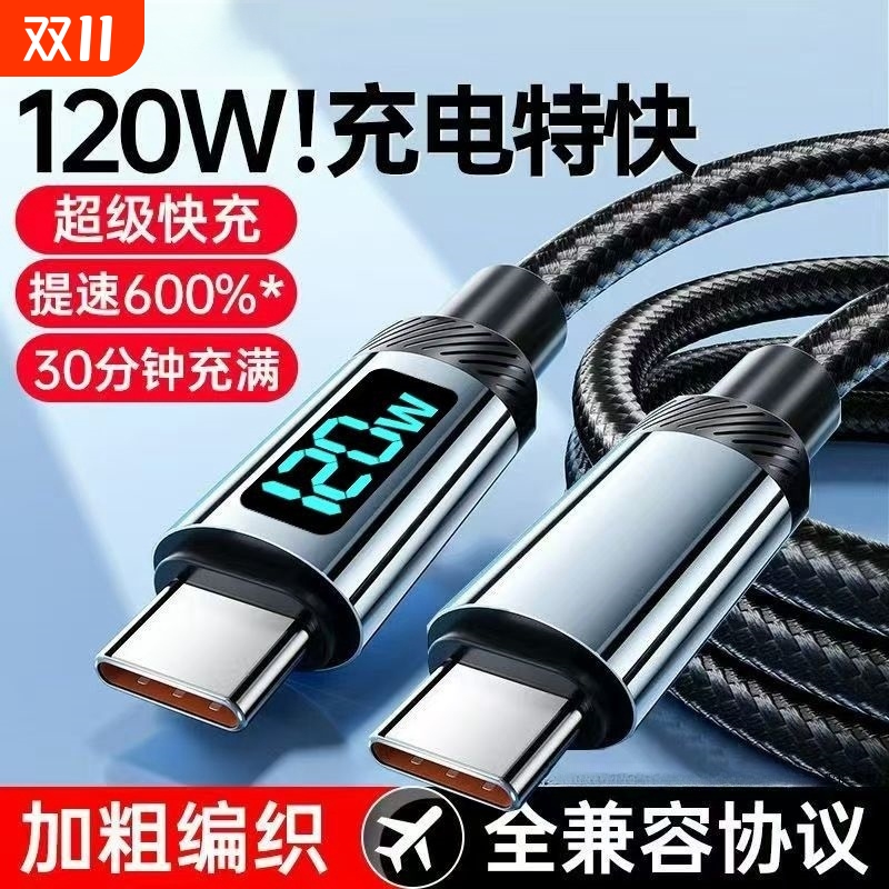 睿洛双typec数据线适用华为充电线快充小米苹果15数显120W