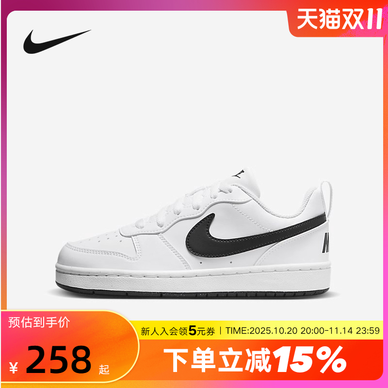 NIKE耐克女鞋COURT白黑酷菠萝低帮板鞋轻便百搭运动休闲鞋D