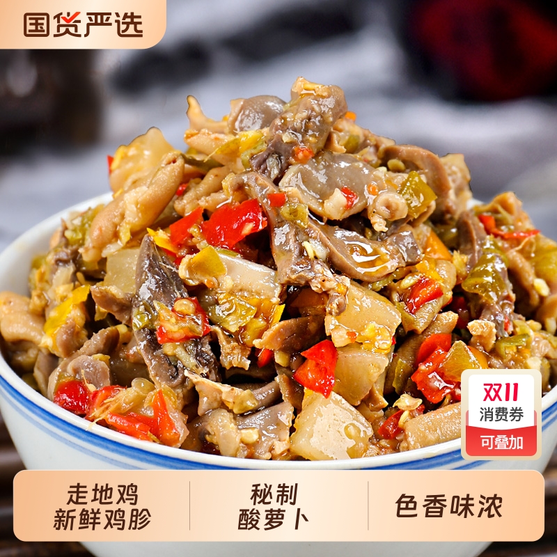 即食下饭菜酸辣鸡杂拌饭菜酸萝卜湖南特产剁辣椒酱菜鸡胗鸡心鸡肠
