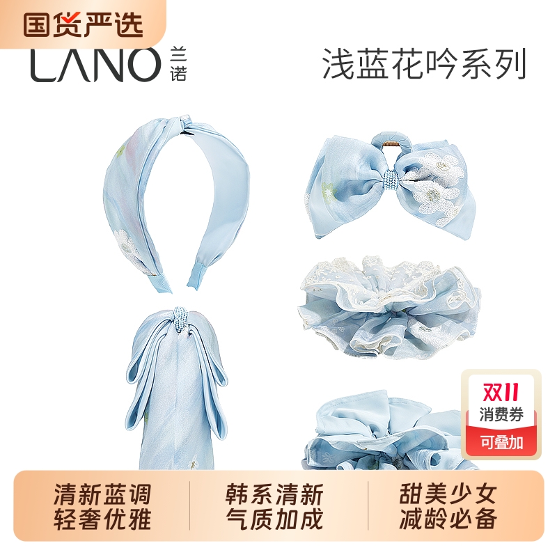 橘子家orange 法式蝴蝶结蓝色超长飘带发夹后脑勺顶夹芭蕾风头