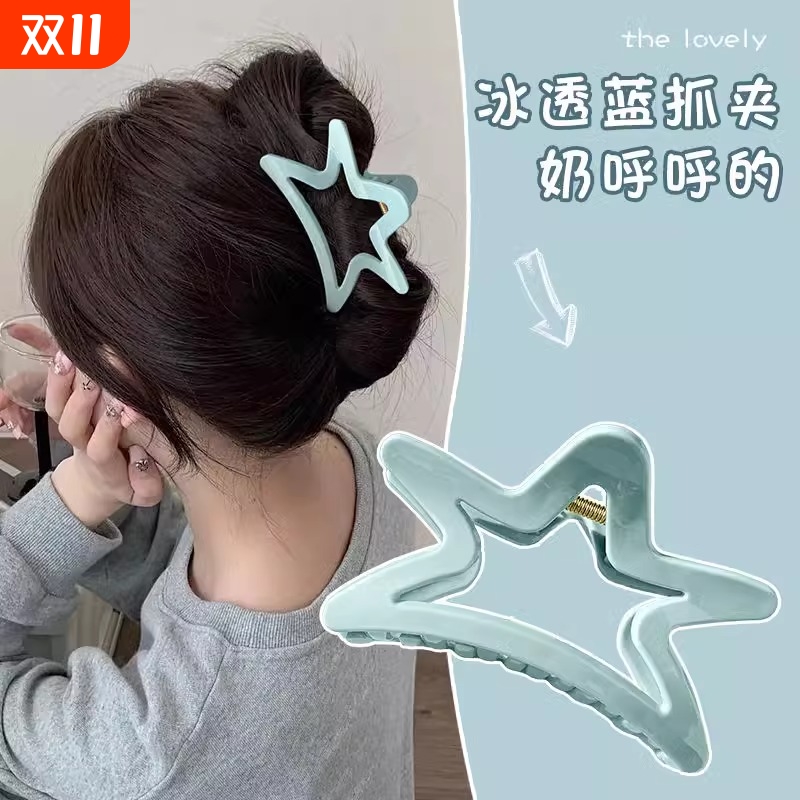 法式甜心奶油蓝色蝴蝶结后脑勺五角星盘发鲨鱼抓夹小众高级感头饰