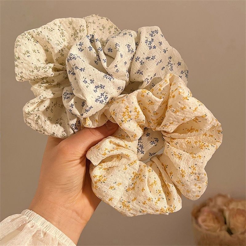 大号蓝色碎花肥肠发绳女韩系气质扎头绳发圈2024新款马尾头花皮筋