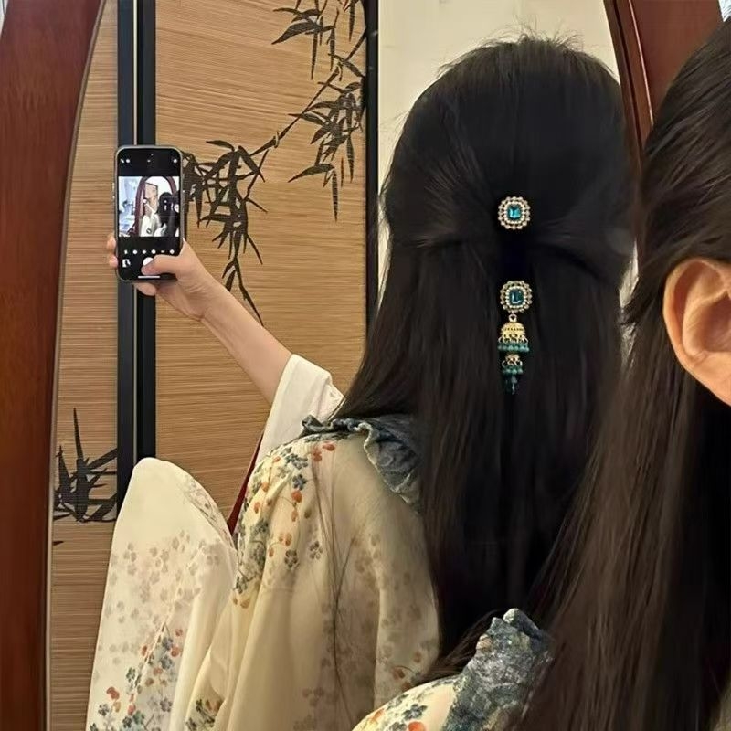 「古典韵味」新中式蓝色流苏发夹女古风气质边夹刘海发卡发饰夹子