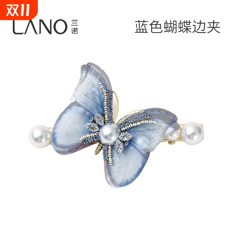 云朵泡泡~蓝色蕾丝蝴蝶结发夹女边夹侧边甜美发卡夹子头饰洛丽塔