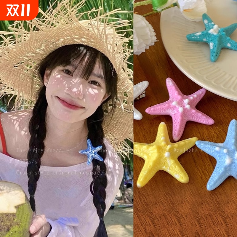 蓝色海星发夹女生夏日多巴胺氛围感侧边刘海发卡海边度假配饰发饰