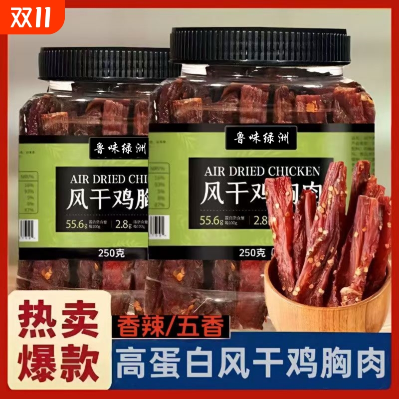 鸡胸肉干风干鸡肉干香辣高蛋白健身耐嚼解馋宿舍便宜罐装休闲零食