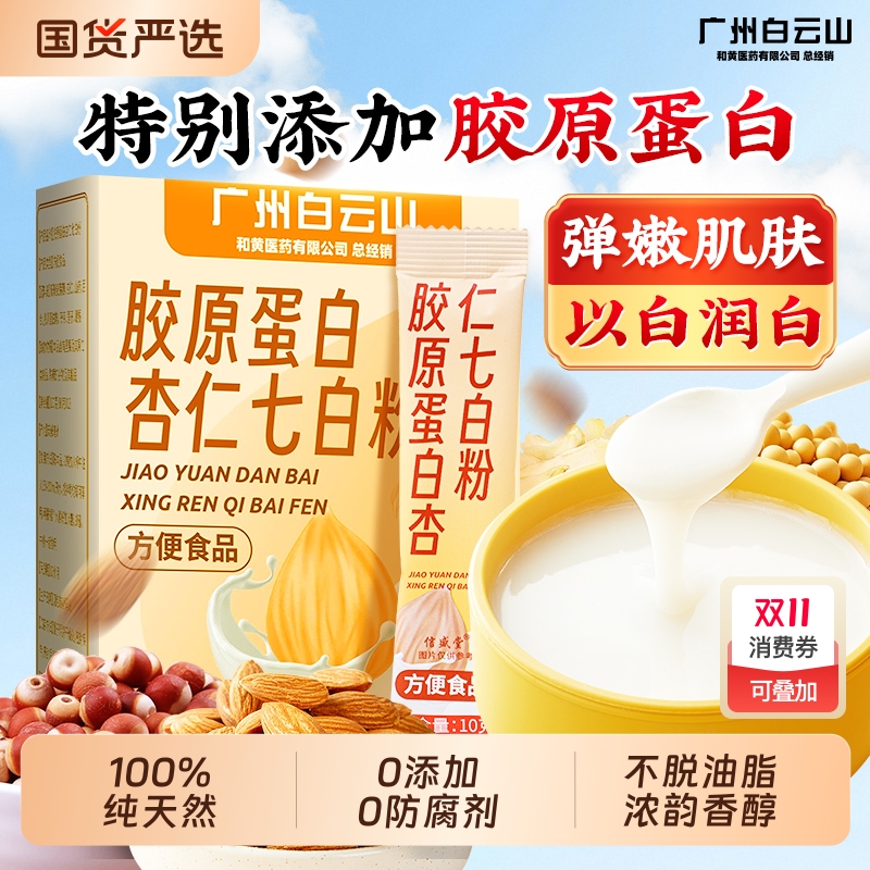 白云山胶原蛋白杏仁七白饮营养早餐冲泡即食官方旗舰店正品杏仁粉