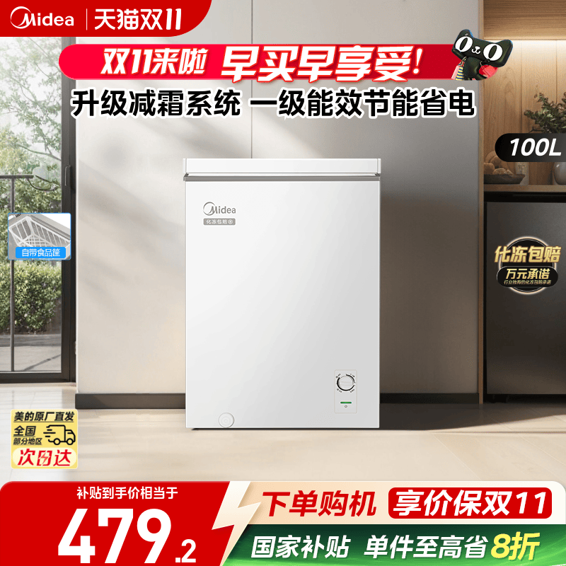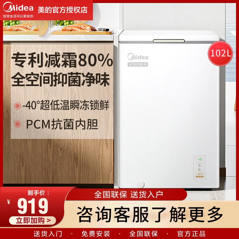 美的冰柜102/146升超低温-40°C度卧式冷藏冷冻转换家用商