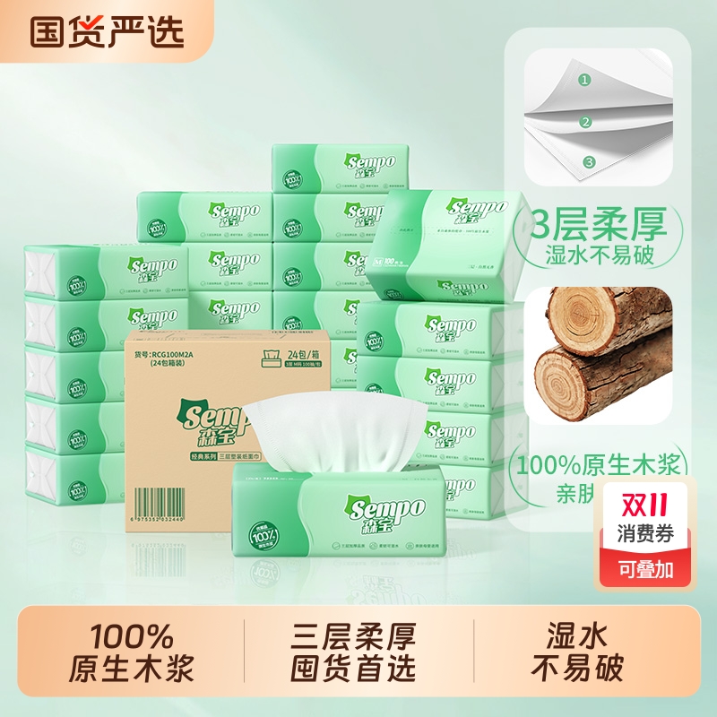 森宝纸巾抽纸100抽整箱24包家用实惠装餐巾纸卫生纸面巾擦手纸抽