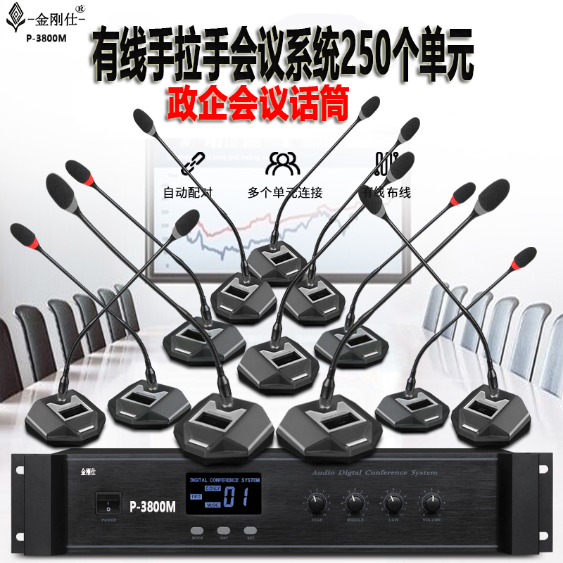 雅奇力有线手拉手会议话筒系统讨论型主席代表视像跟踪表决功能