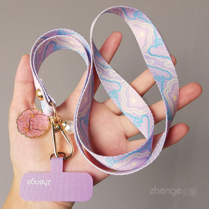 ins风嘉兰印花手机挂绳宽版不勒挂脖绳国潮彩绘工作证校牌吊带绳