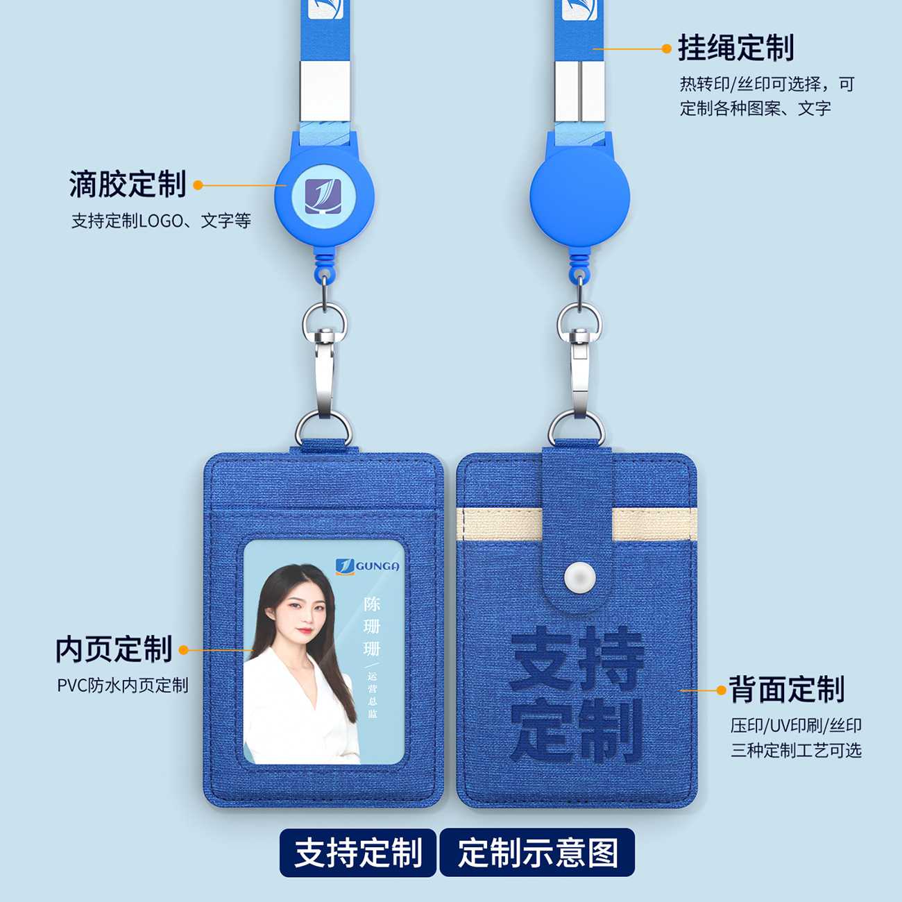新款直销证件卡套挂绳定制高档伸缩扣工作证卡套工作牌厂牌员工工