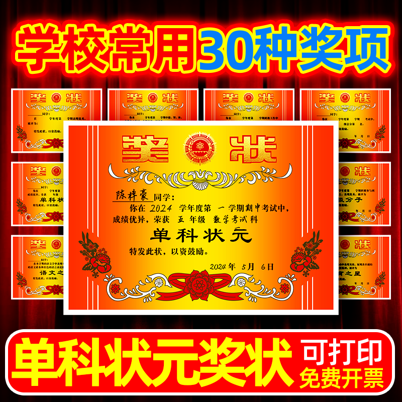A4加厚铜板纸空白卡通奖状荣誉证书喜报创意中小学生幼儿园奖状纸