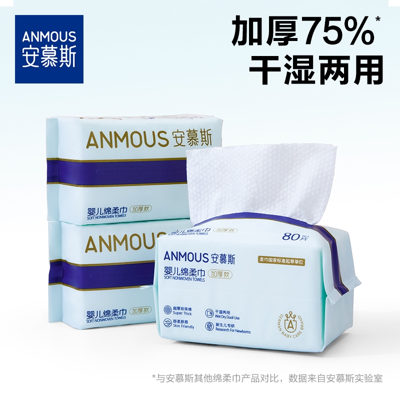 下拉详情享补贴丨安慕斯绵柔巾加大加厚宝宝干湿两用一次性洁面巾