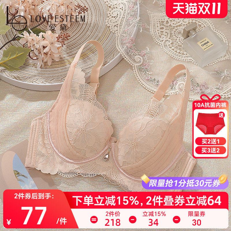 内衣女小胸聚拢显大调整型无钢圈收副乳上托防下垂蕾丝少女文胸罩