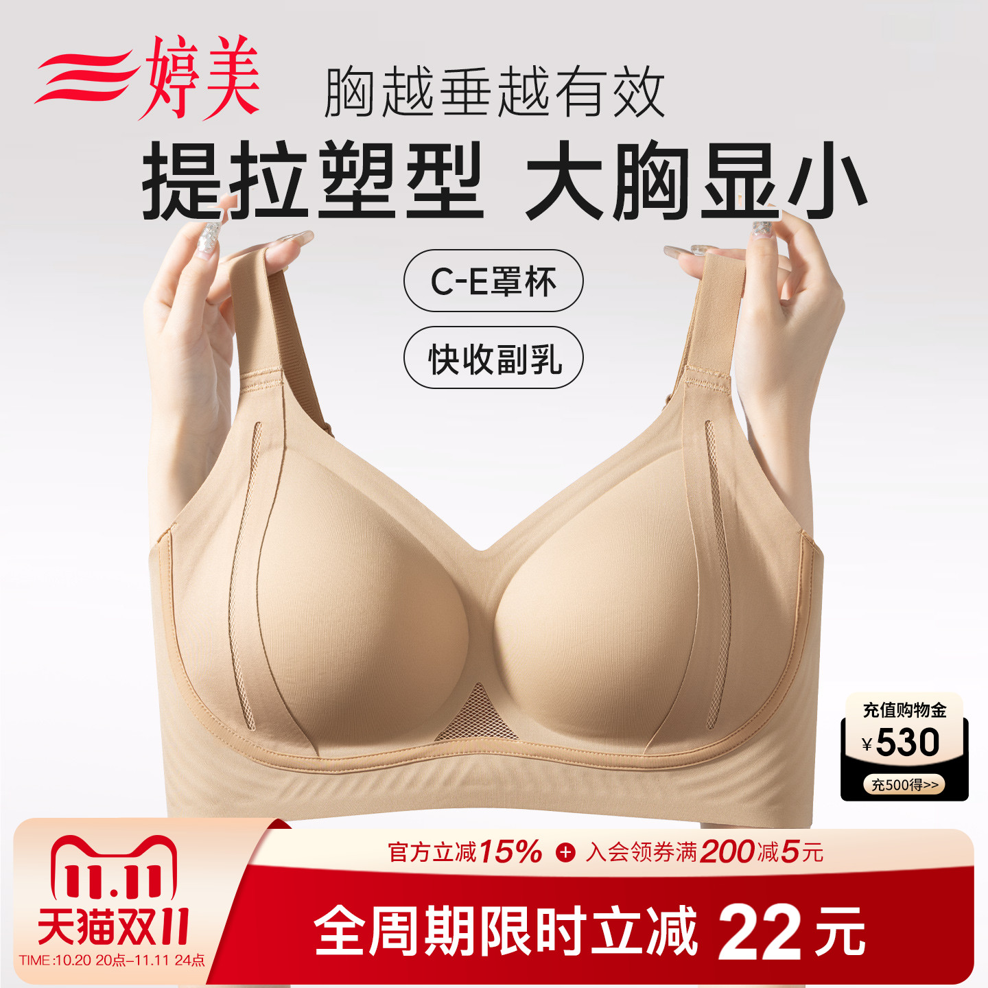 提拉无痕内衣女调整型防下垂聚拢大胸显小收副乳无钢圈大码文胸罩