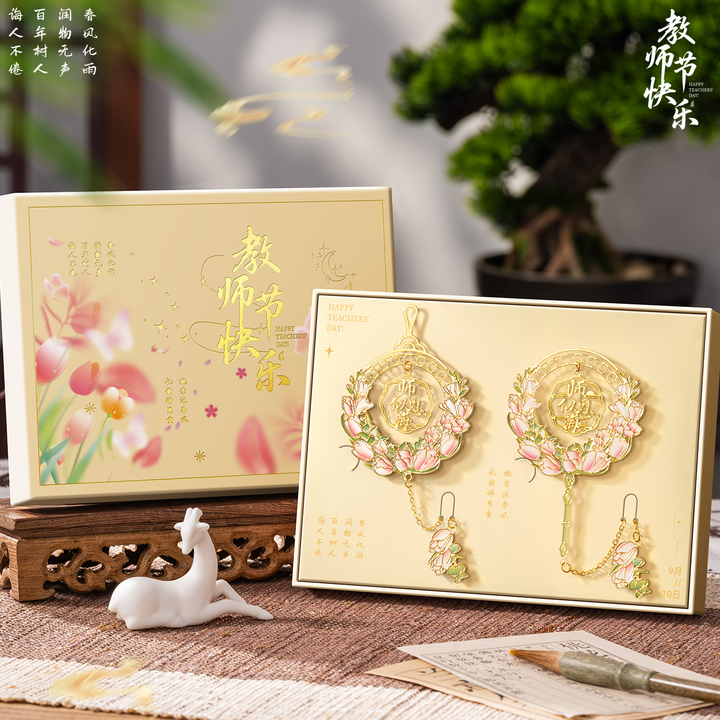 教师节礼物书签礼盒套装高古典中国风档精致金属文创纪念品黄铜书签高