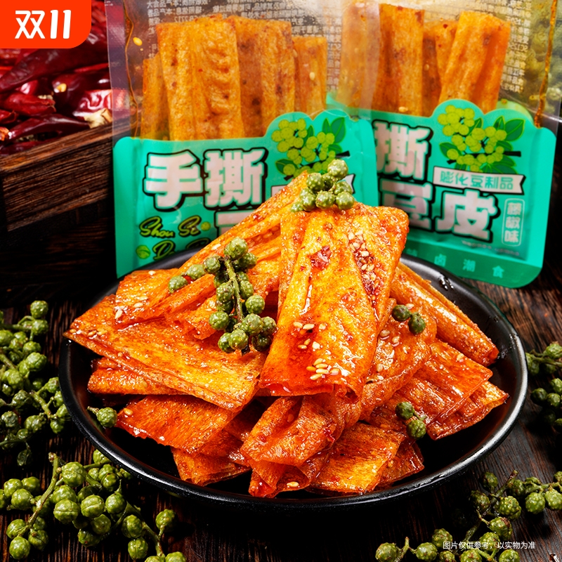 藤椒味手撕豆皮豆干豆片豆制品辣条解馋辣味零食小吃藤椒辣条