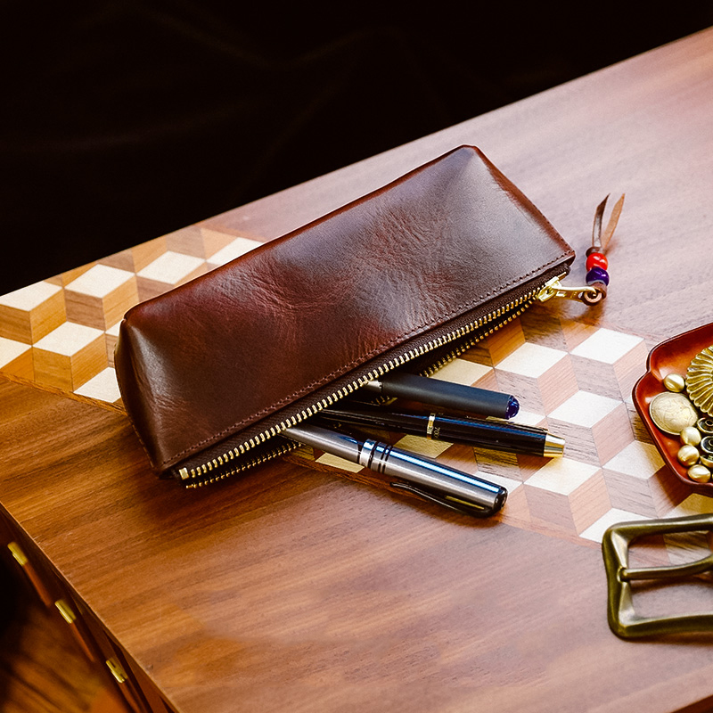 仿意大利植鞣头层牛皮质感手工笔袋大容量笔套铅笔钢笔收纳包复古