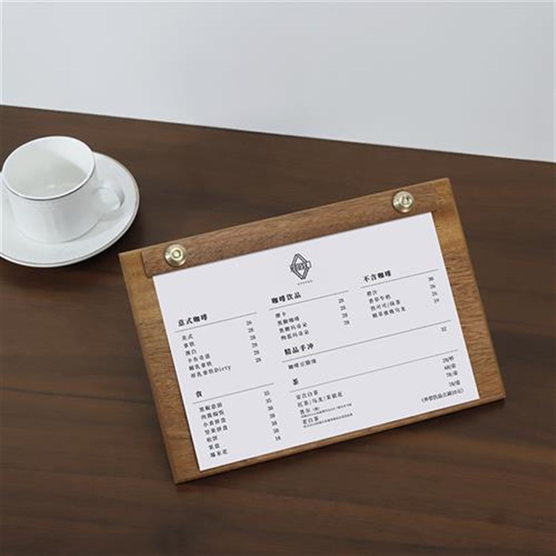 菜单夹胡桃木展示牌桌面咖啡店菜单板立式a4垫板餐厅木质账单夹