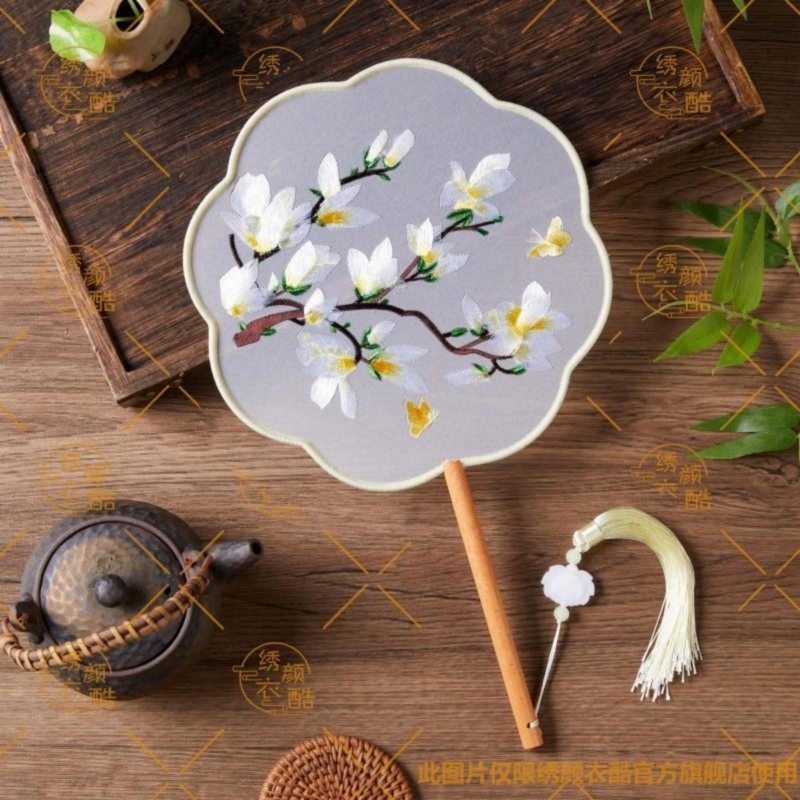 团扇双面古典扇子古风半透圆形流苏女古装汉服旗袍丝质古装扇子