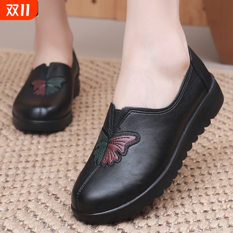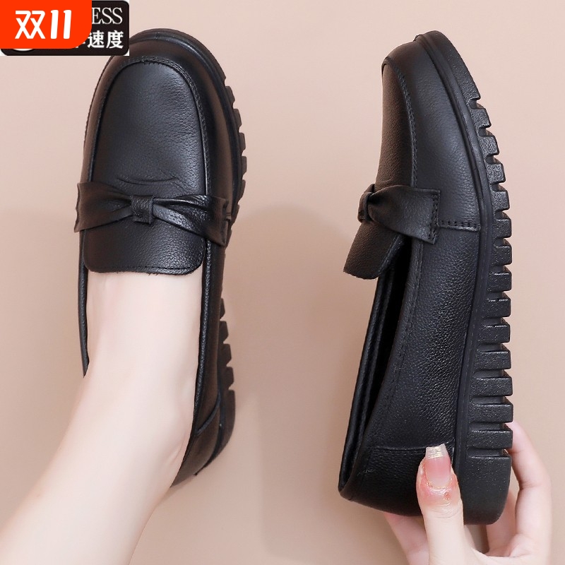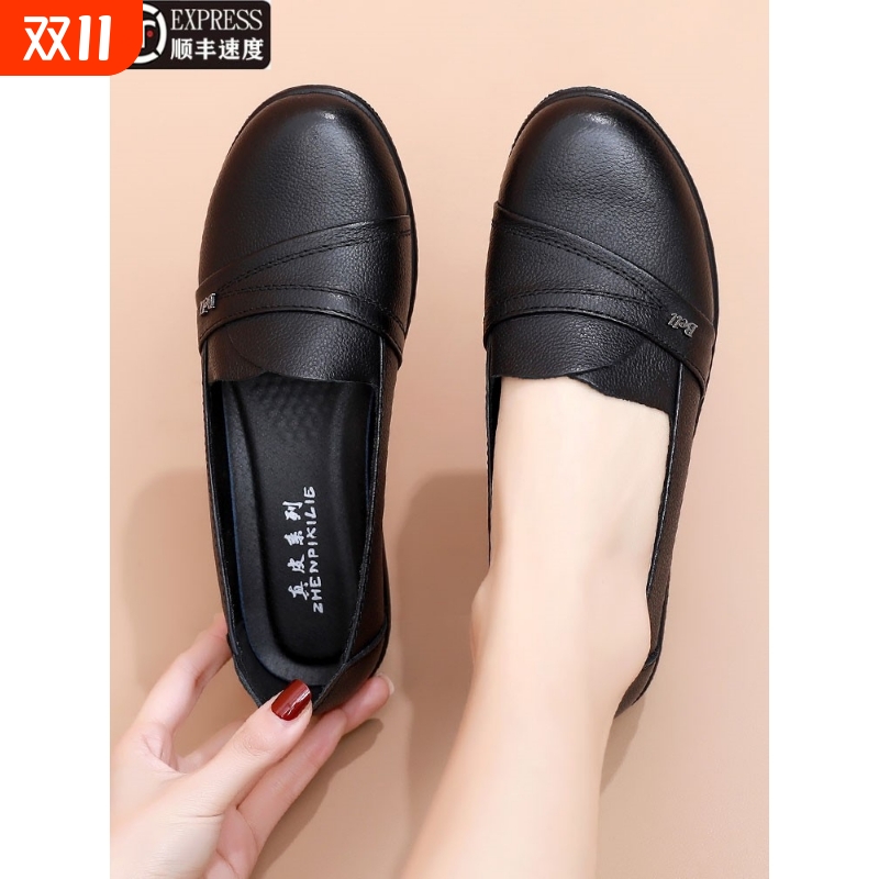 寿足力2025新款真皮妈妈鞋舒适中老年单鞋平底鞋防滑中年工作鞋
