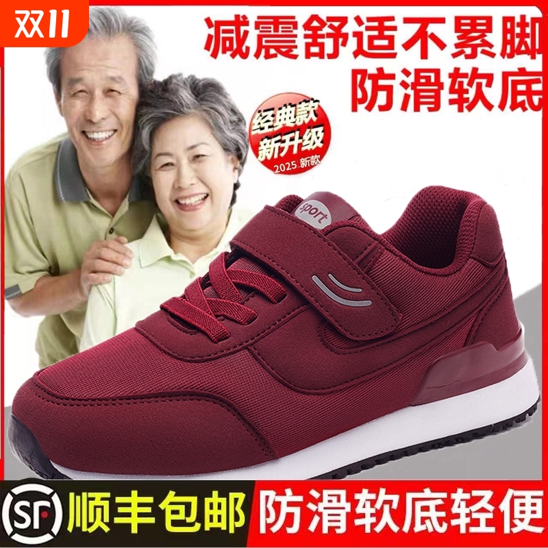 寿足力老人健步鞋春秋季网面透气爸爸鞋轻便软底防滑中老年妈妈鞋