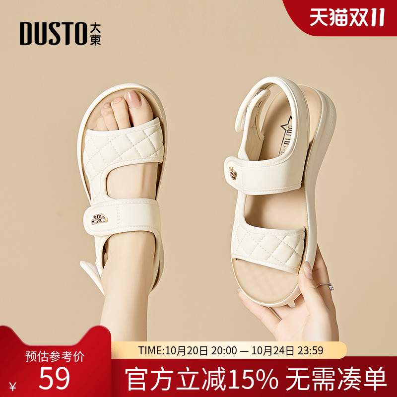 大东运动凉鞋女鞋2025夏季新款休闲平底中跟露趾魔术贴图案X50