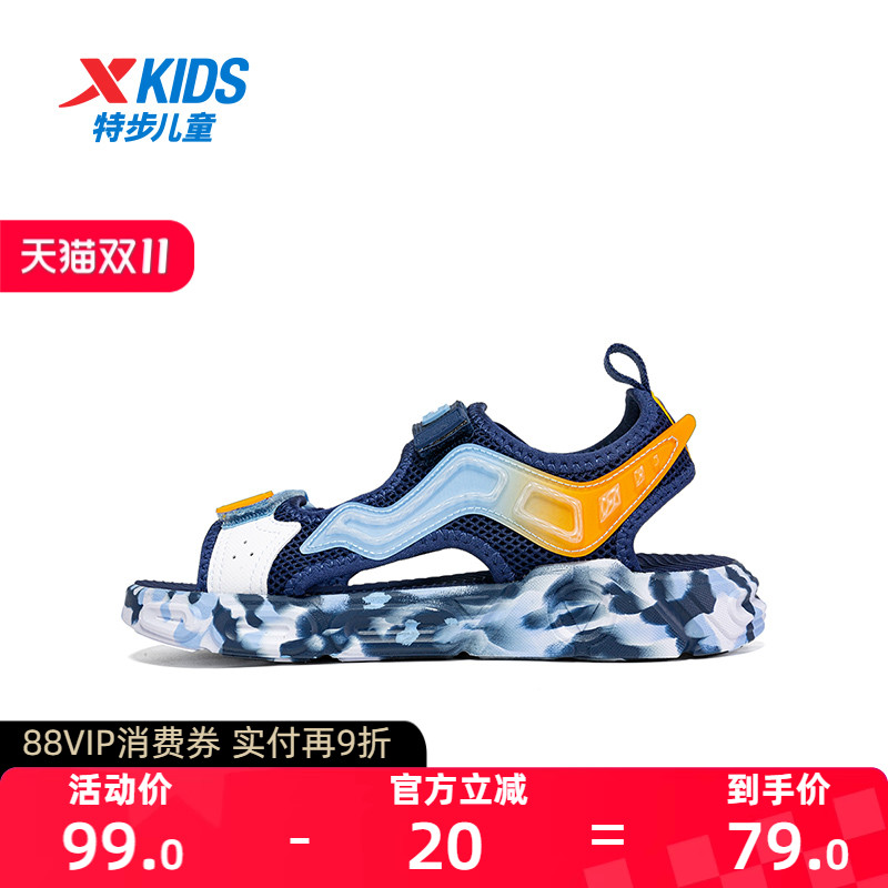 【商场同款】特步童鞋2024夏季新款男童露趾凉鞋软底沙滩鞋中大童