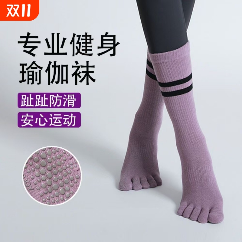 瑜伽袜子防滑专业女普拉提五指袜运动训练长袜分趾跳舞中筒棉袜新