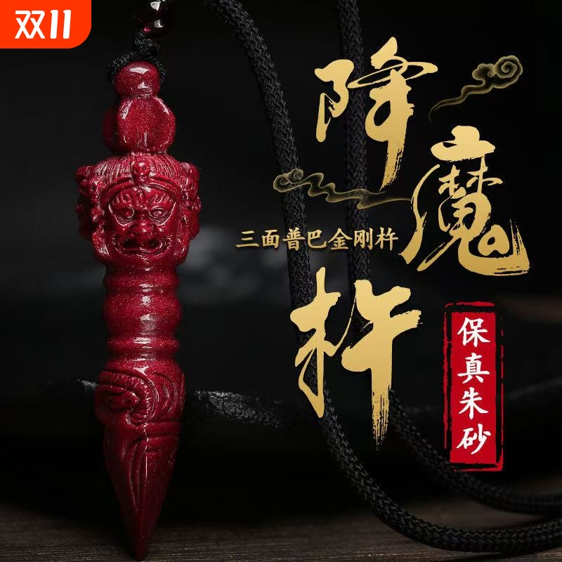 天然朱砂金刚杵吊坠降魔杵男项链挂件护身符平安转运钥匙扣坠佩戴
